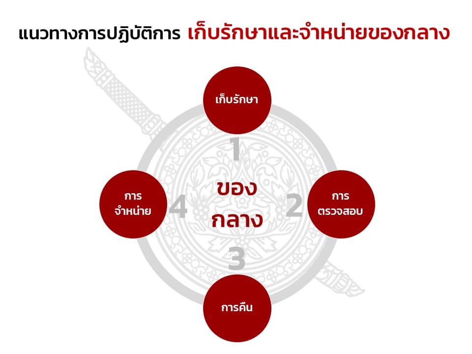 การจัดการทรัพย์สินของราชการ ของบริจาค การจัดเก็บของกลาง และการรายงานผล