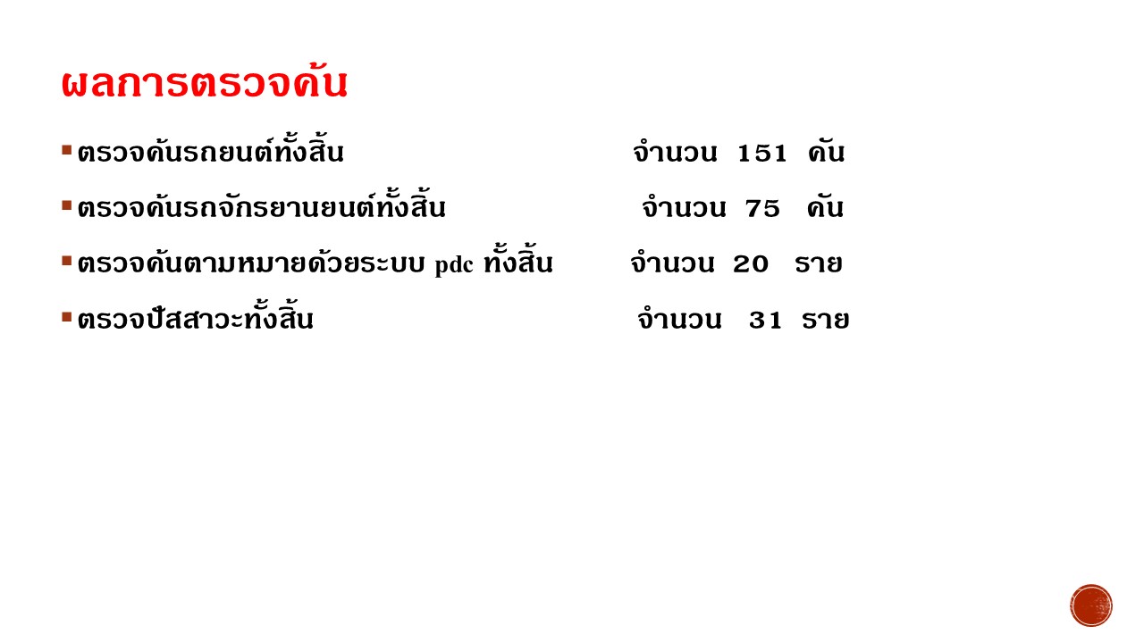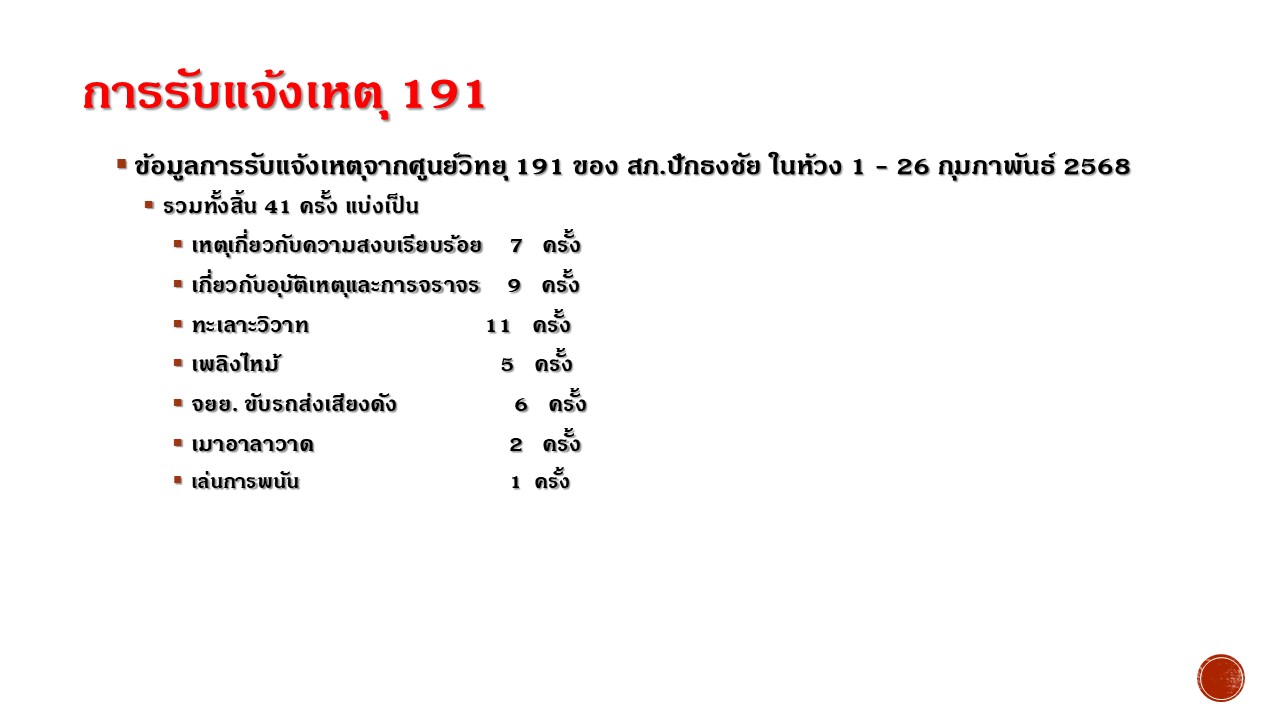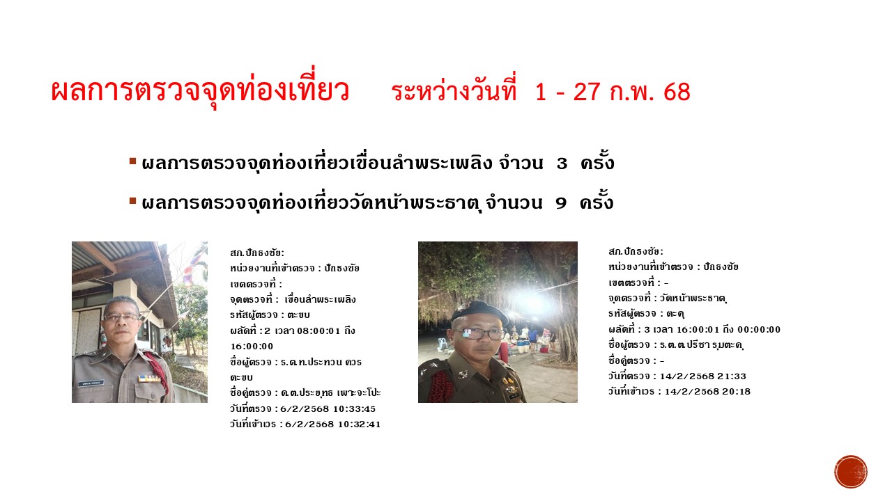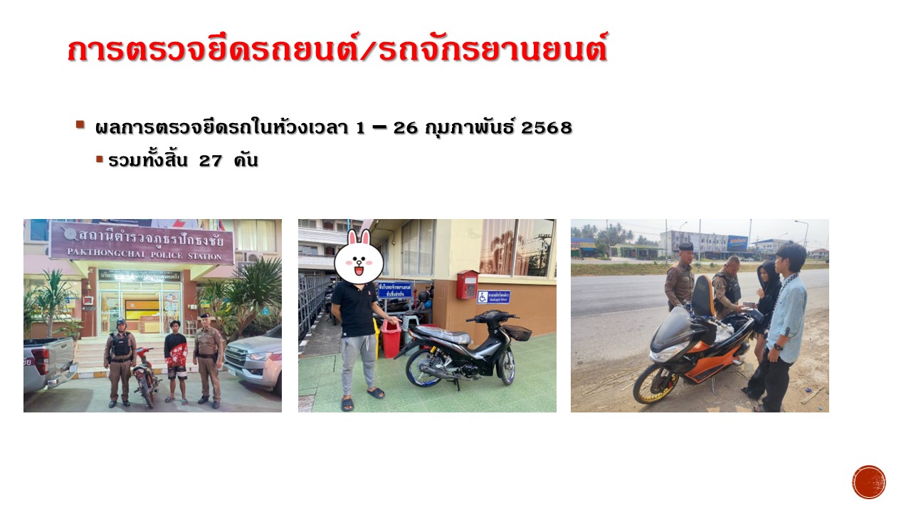 ผลการปฏิบัติงาน สายงานป้องกันปราบปราม ประจำเดือน กุมภาพันธ์ 2568