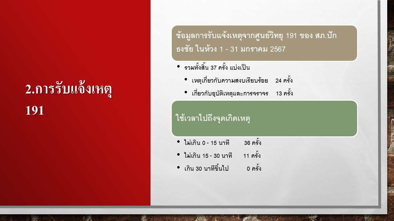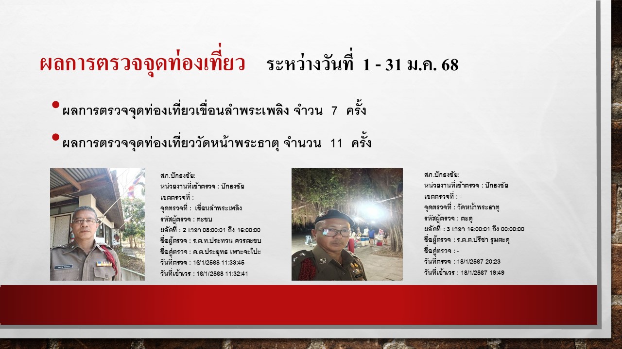 ผลการปฏิบัติงานป้องกันปราบปราม เดือน มกราคม 2568