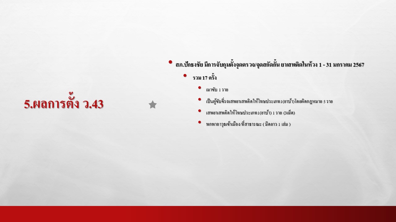 ผลการปฏิบัติงานป้องกันปราบปราม สถานีตำรวจภูธรปักธงชัย ประจำเดือน มกราคม 2568
