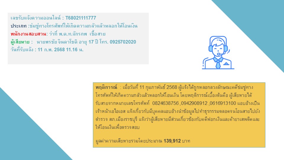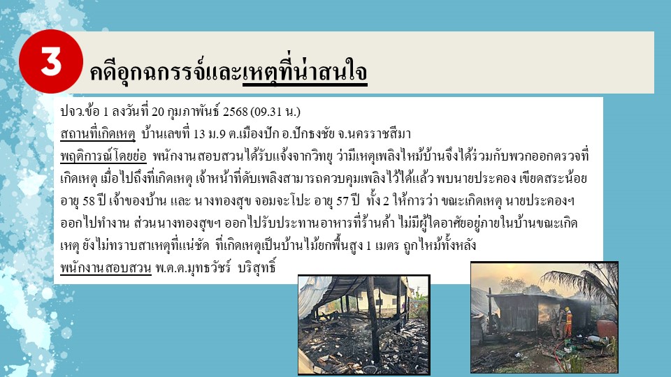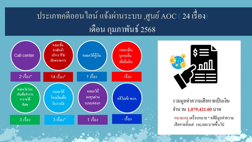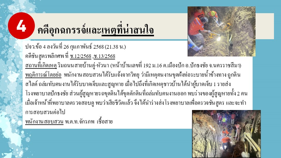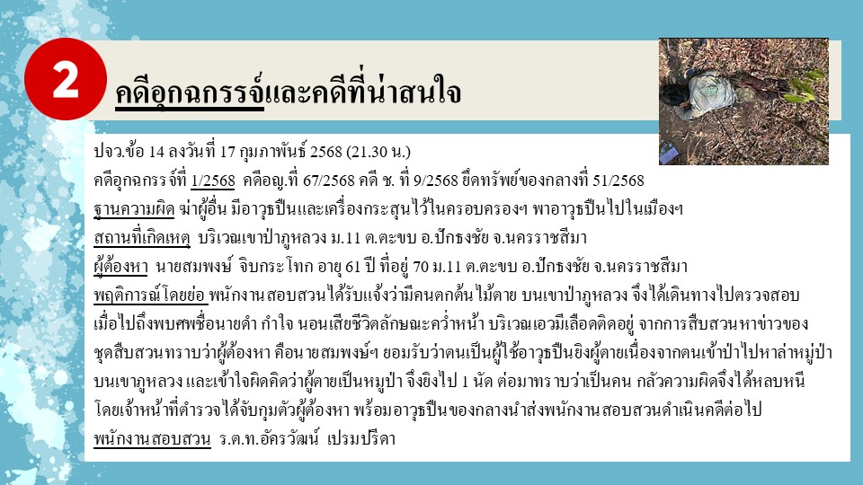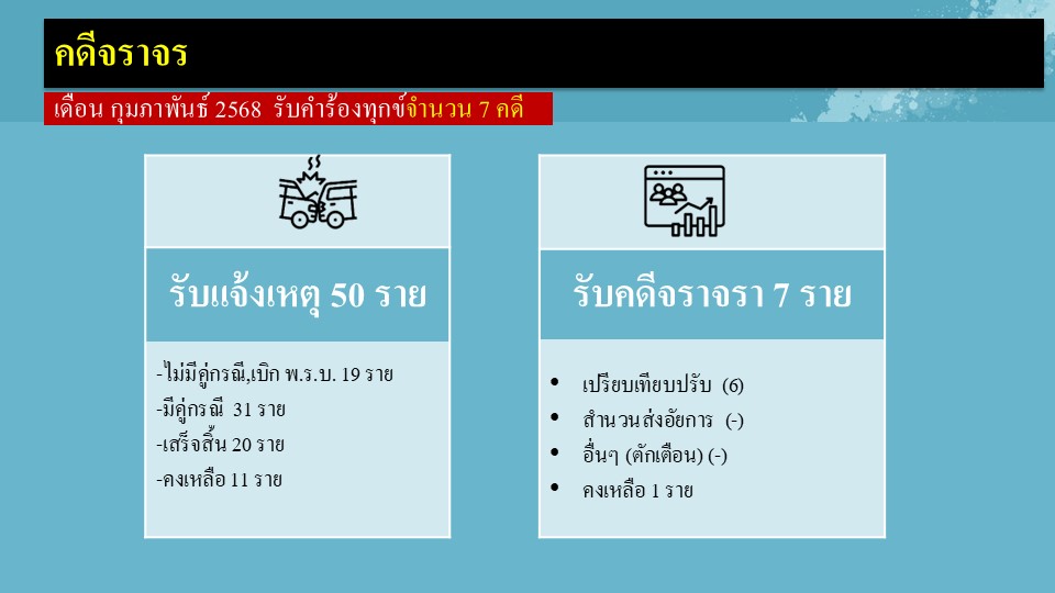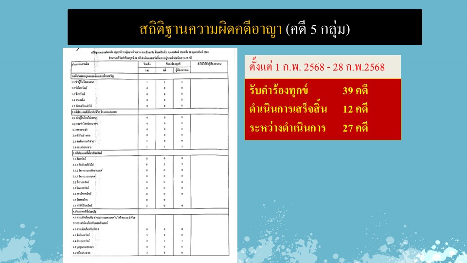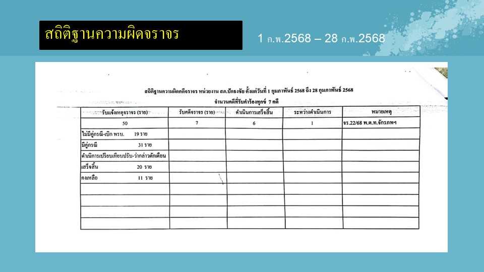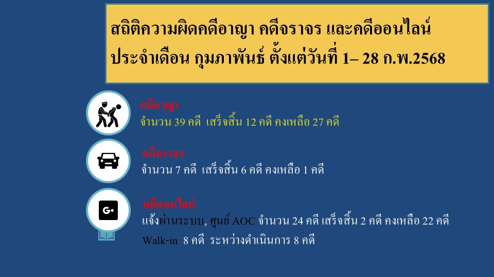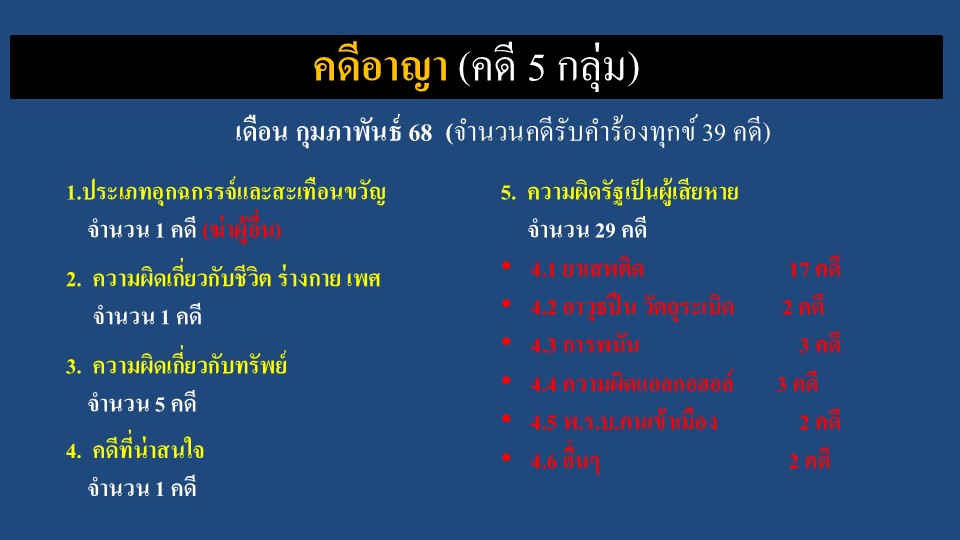 ผลการปฏิบัติงานสายงานสอบสวน ประจำเดือนกุมภาพันธ์ 2568