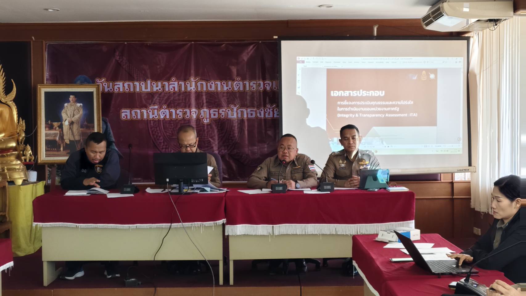 | เมื่อวันที่ 28 มกราคม 2568 เวลา 10.00 น. พ.ต.อ.บุญโปรด ประเสริฐศักดิ์ ผกก.สภ.ปักธงชัย ประชุมชี้แจงข้อราชการประจำเดือน มกราคม 2568 และให้แต่ละสายงานบรรยายสรุปผลการปฏิบัติงานในห้วงเดือนธันวาคม 2567 เพื่อให้ที่ประชุมรับทราบ และชี้แจงข้อราชการที่ได้รับสั่งการมาในการประชุมบริหาร ภ.3 และการประชุมบริหาร ภ.จว.นครราชสีมา ให้ข้าราชการตำรวจในสังกัดได้รับทราบและนำไปปฏิบัติตามนโยบายของผู้บังคับบัญชาอย่างเคร่งครัด พร้อมนี้ยังได้มีการกำชับการดำเนินการเกี่ยวกับการประเมินคุณธรรมและความโปร่งใสของหน่วยงานภาครัฐ(ITA) ประจำปีงบประมาณ พ.ศ.2568 เพื่อให้มีการปรับปรุงการให้การบริการสร้างความพึงพอใจให้แก่ประชาชน และให้ข้าราชการตำรวจปฏิบัติหน้าที่อย่างสุจริต ไม่รับสินบนทุกชนิดจากการปฏิบัติหน้าที่ |