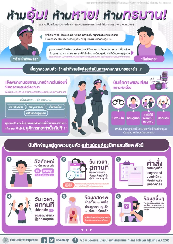 ที่มา : พระราชบัญญัติป้องกันและปราบปรามการทรมานและการกระทำให้บุคคลสูญหาย พ.ศ. 2565
