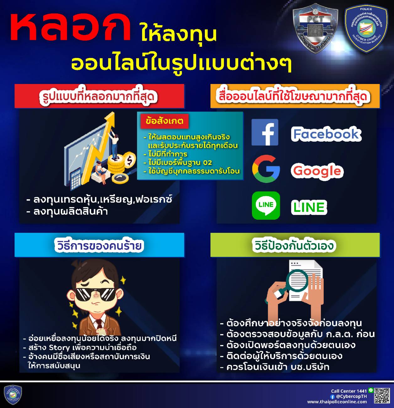 การหลอกลวงออนไลน์รูปแบบต่าง ๆ ที่ท่านอาจพบเจอได้บ่อย ๆ หากพบเจอการกระทำลักษณะแบบนี้ ขอให้ท่านจงใช้สติในการพินิจพิจารณา อย่าเชื่อ อย่ากด และอย่าทำตาม เด็ดขาด